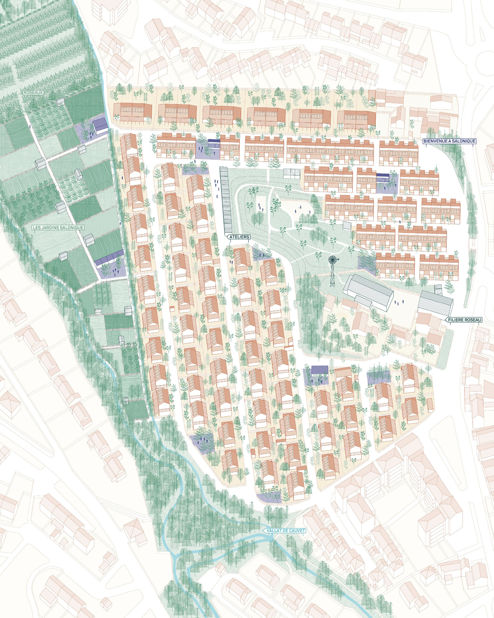 Le projet invite à une évolution des usages vers un mode de vie résilient, en développant l’idée d’une saisonnalité de l’habiter, rendue possible par les nouvelles typologies de logements et les espaces dédiés à la collectivité.