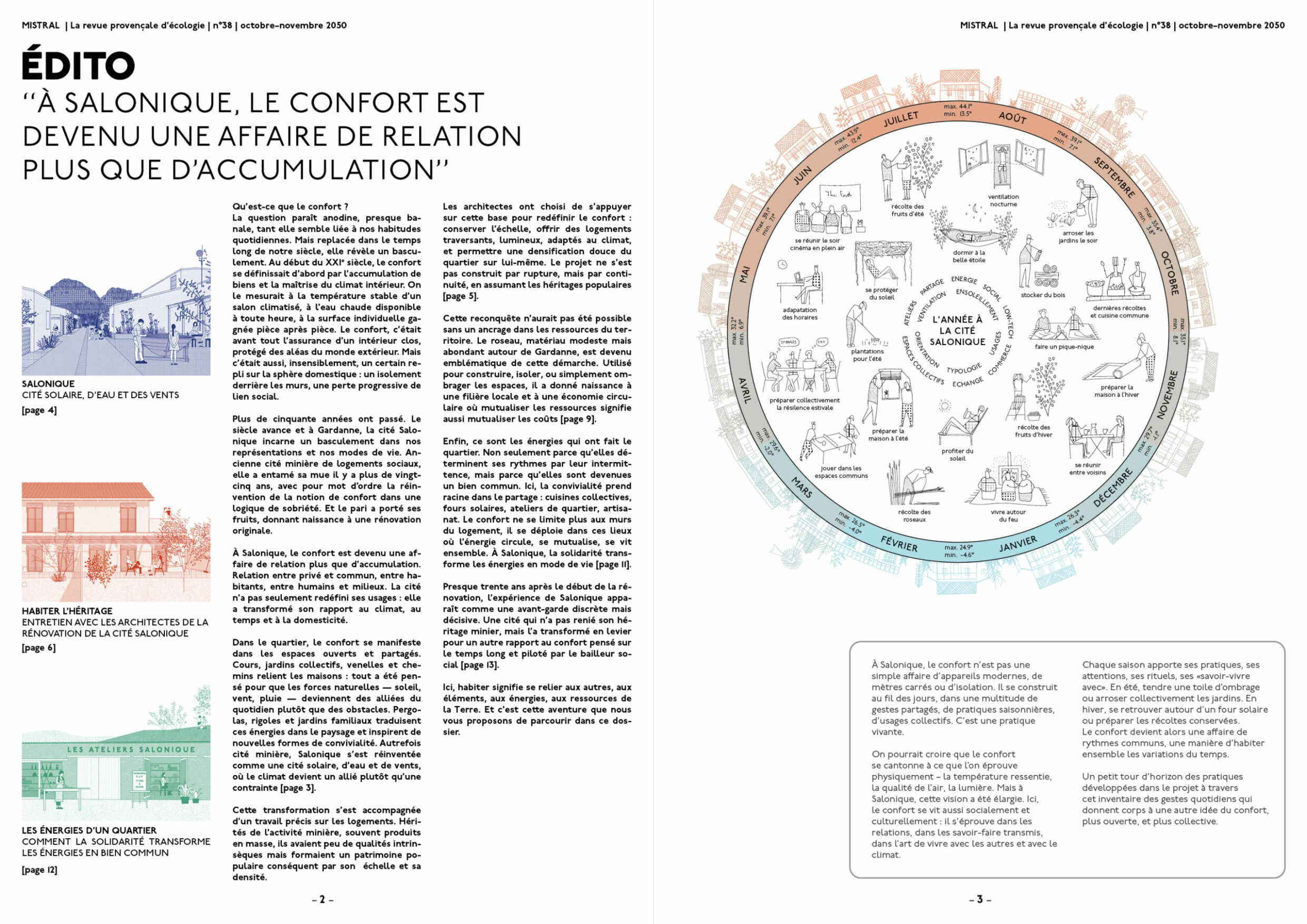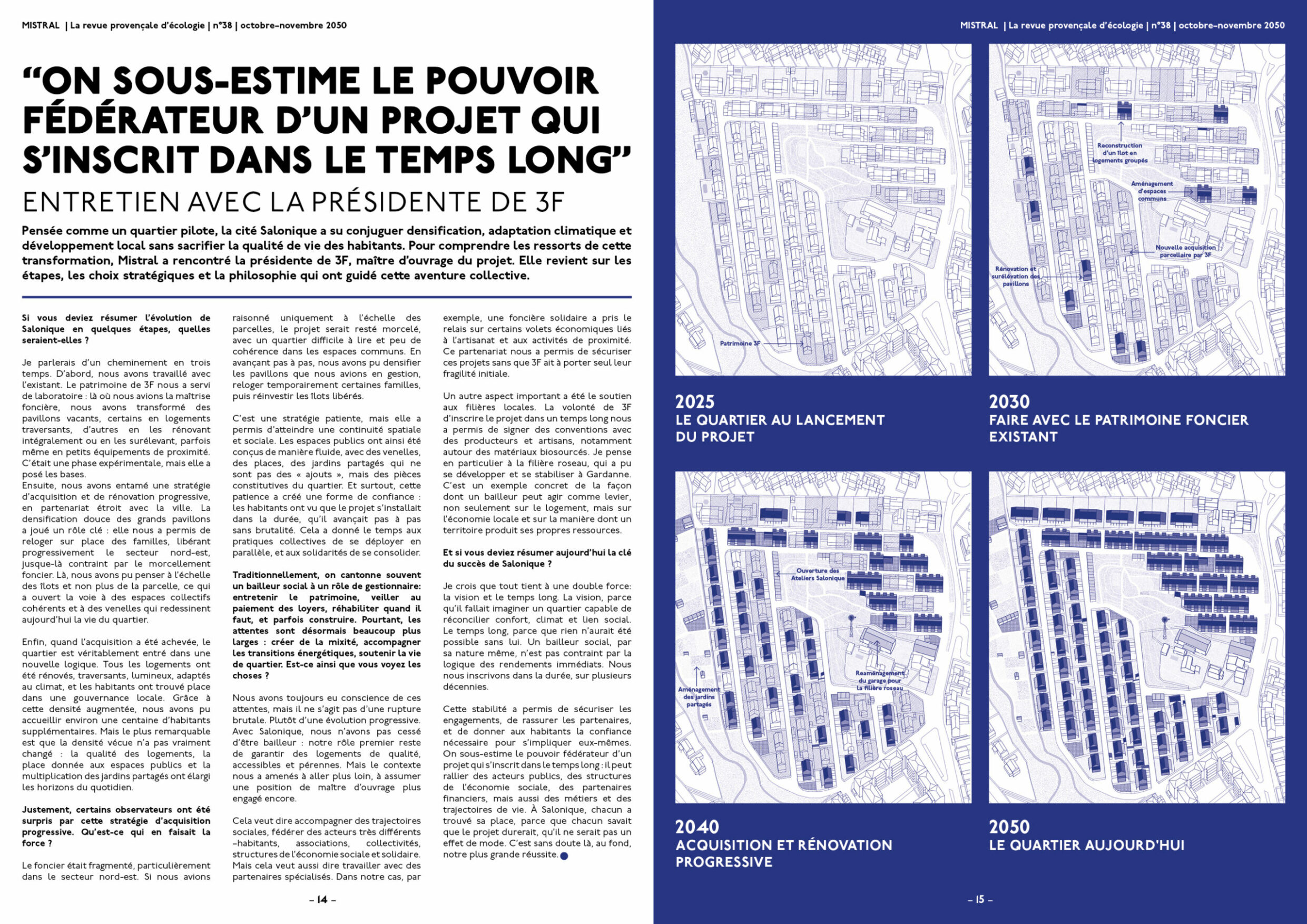 Le projet est présenté sous la forme d’une revue fictive, rédigée en 2050, donnant voix à l’ensemble des acteurs de la cité.