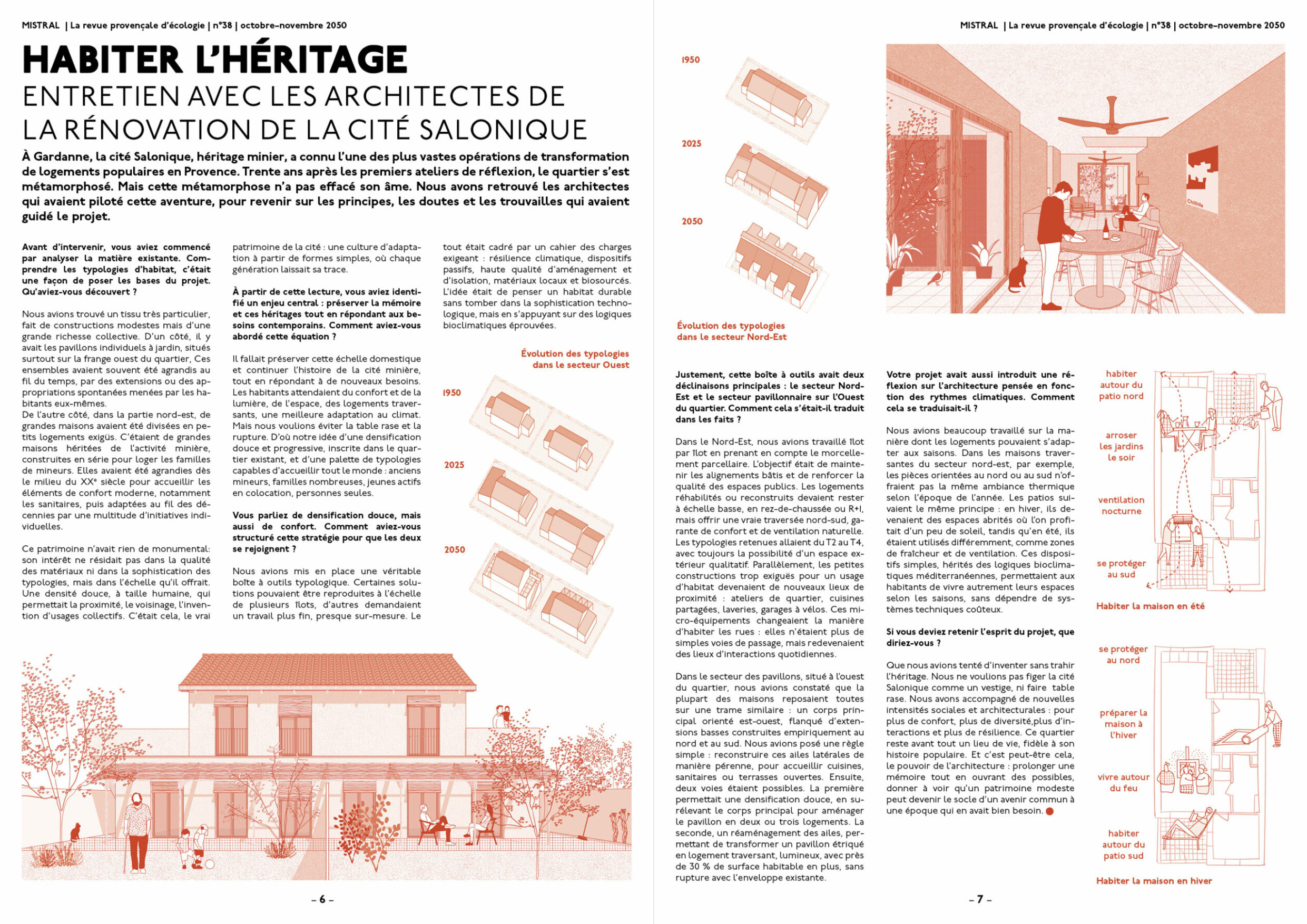 La proposition interroge la notion de conforts à l’horizon 2050 en l’ancrant dans les liens entre habitants, espaces partagés, milieux naturels et héritage populaire du bassin minier provençal.
